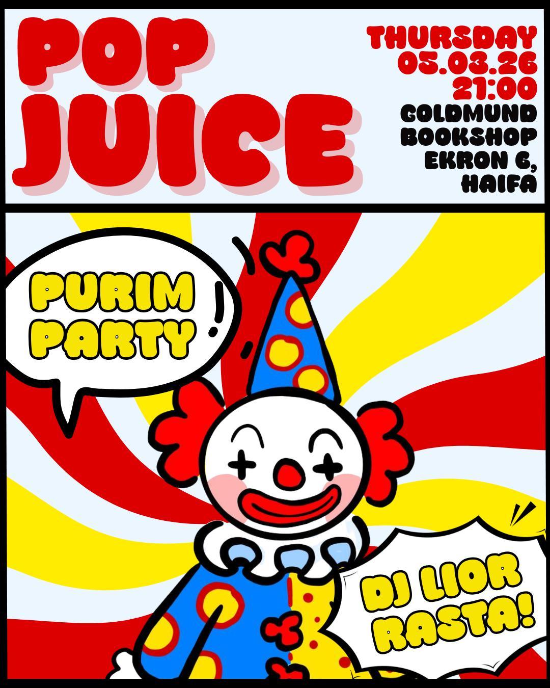 יום חמישי 5/3 שעה 21:00 פופ ג’וס מתחפשת במסיבת פורים מיוחדת. בתוכנית תחפושות מוגזמות, כולן מוזמנות ומוזמנים להביא את האלטר אגו לרחבת הריקודים. אנחנו ננגן מוזיקת פופ איכותי וטהור החל מפופ הכי טרי ג’וסי ופרששששש, פלשבקים לשנות התשעים כשאם.טי.וי היה פתוח בבית, טראומות משנות ה2000 את הסוואג וגם הקרינג’ של שנות האלפיים המאוחרות ואתם תעשו ריקודים כאילו אתם לבד בחדר מול המראה. זה יהיה קצת הומואי אבל לא סקטוריאלי, אנטי-גילני, זה יהיה פמיניסטי אבל עם היפ הופ נשי שיגרום לכם לזוז בצורה סליזית, כי רק לנו עצמנו יש את הזכות להחפיץ את גופנו! המסיבה לא תתקיים במועדון צפוף ואפוף עשן, ובלי דוכנים או ילדים מעצבנים שיתרוצצו מסביב, רק ריקודים ו100% פאן. על המוסיקה ינצח די ג’יי ליאור ראסטה שהוא במקרה הדי ג’יי הכי טוב בעולם (נשבעים שזה לא הוא רשם את זה). אנחנו נהיה במקום הכי מגניב בחיפה – גולדמונד חנות ספרים ברח’ עקרון 6 חיפה, מתי יצא לכם לרקד עם מורקמי, ד”ר סוס וגרוסמן? להיות במסיבה ולחזור הביתה ממסיבה בלי ריח של מאפרה. במקום בר אלכהולי במחירים שיעשה לנו כיף לשתות עדלאידע ואוכל ביתי שירכך את החמרמורת. כרטיסים באתר החל מ50 שקלים בלבד לזריזות שבנינו, מספר מקומות מאוד מוגבל.