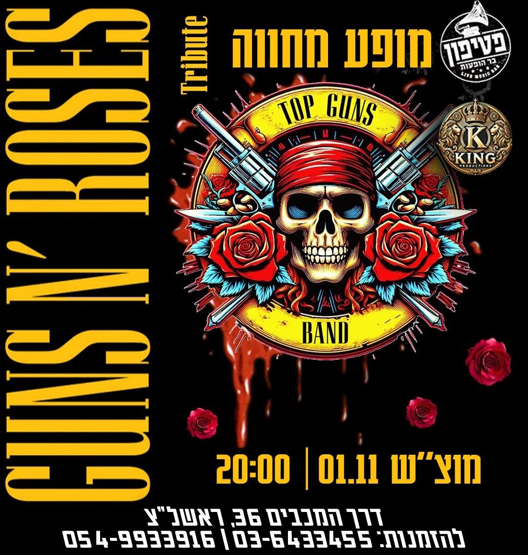 TOP GUNS BAND מגיעה לראשון לציון למופע מחווה מחשמל ללהקה ששינתה את חוקי המשחק – GUNS N' ROSES!