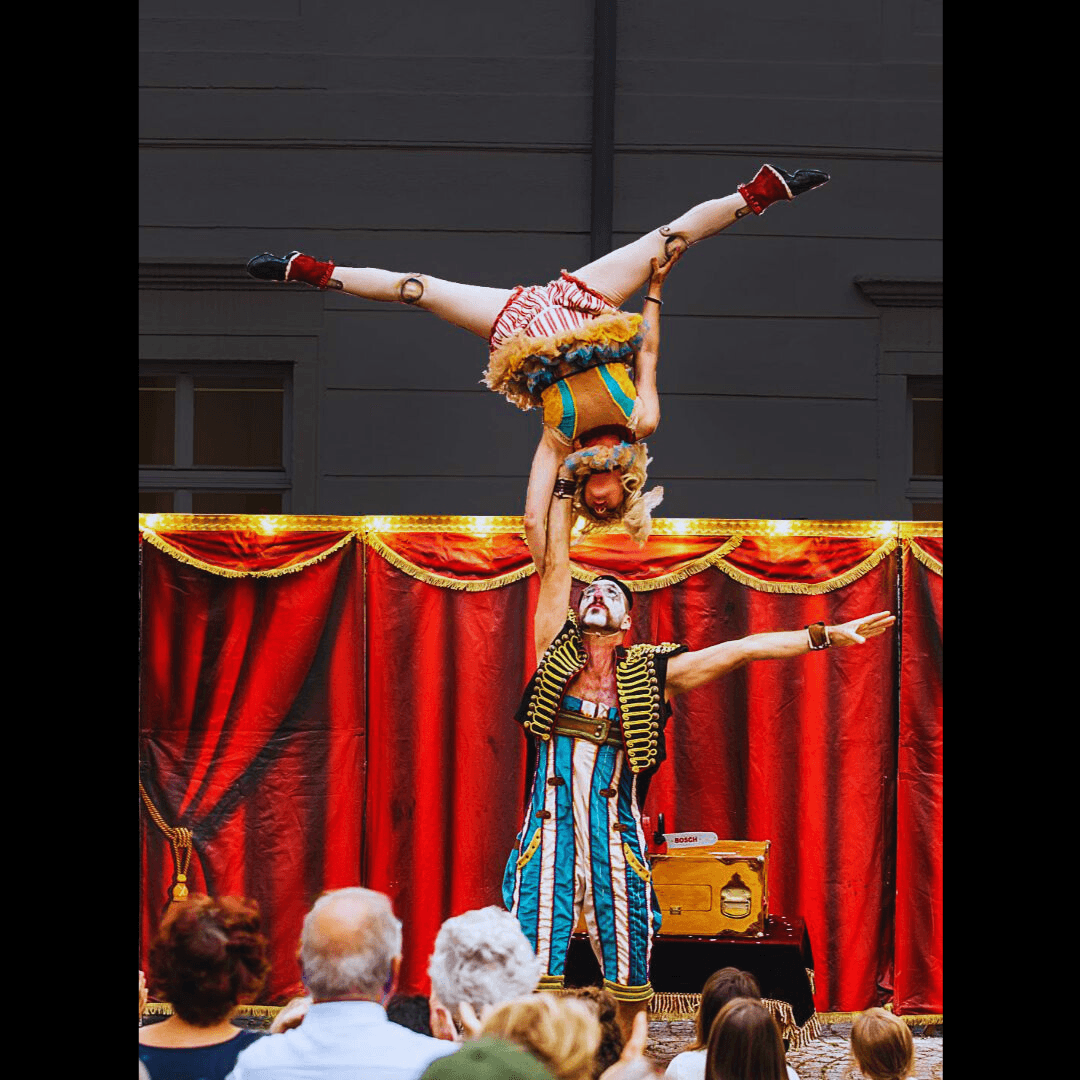 בתרגילי אקרובטיקה, ג'אגלינג וליצנות פרועה,