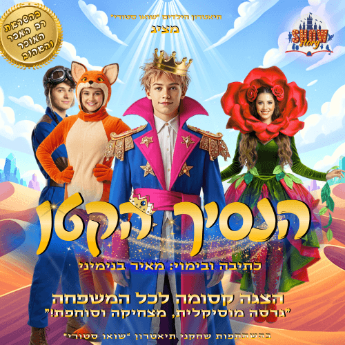 הצגת ילדים חדשה בהשראת רב המכר האהוב והעל-זמני שכבש מיליוני לבבות ברחבי העולם. ילד קטן וזהוב שיער המגיע מכוכב רחוק כדי להזכיר לנו מה באמת חשוב בחיים. הוא פוגש טייס אבוד, ויחד הם יוצאים למסע פלאי בין כוכבים רחוקים ודמויות מפתיעות. יחד עם השועל החכם והשושנה המיוחדת הם מגלים איך אפשר לראות את העולם גם דרך הלב. חגיגה מוזיקלית וקסומה לכל המשפחה! הצגה צבעונית ומלאה בדמיון, שמזכירה לילדים כמה כוח יש לחברות אמת, ומחזירה את ההורים לרגעים המתוקים שבהם גם הם היו ילדים. חוויה משותפת ומרגשת.