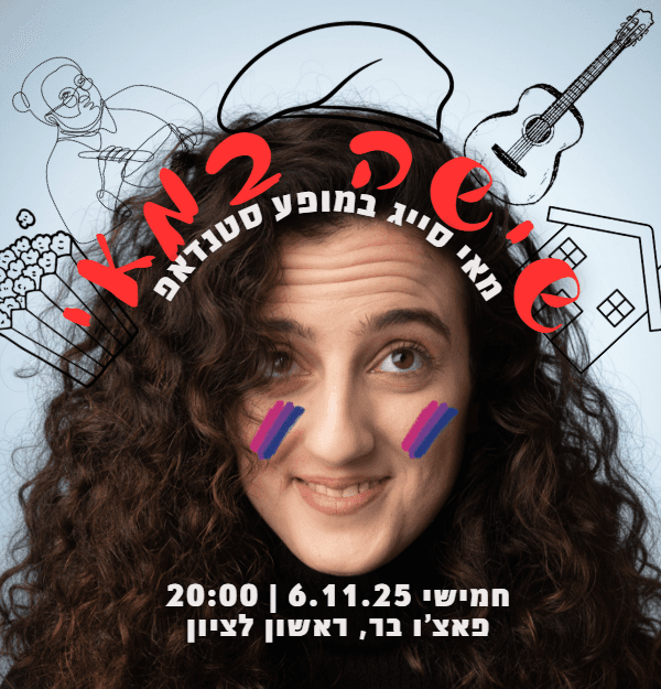 אז יאללה, בואו לסטנדאפ קצת אחר. ותאספו את מאי בדרך למה היא מתקמצנת להוציא אוטו.