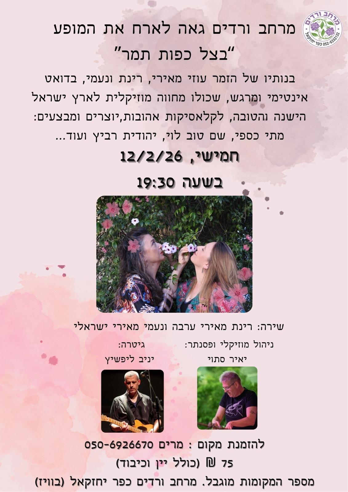 בנותיו של הזמר עוזי מאירי, רינת ונעמי, בדואט אינטימי ומרגש, שכולו מחווה מוזיקלית לארץ ישראל הישנה והטובה, לקלאסיקות אהובות, יוצרים ומבצעים: מתי כספי, שם טוב לוי, יהודית רביץ ועוד...