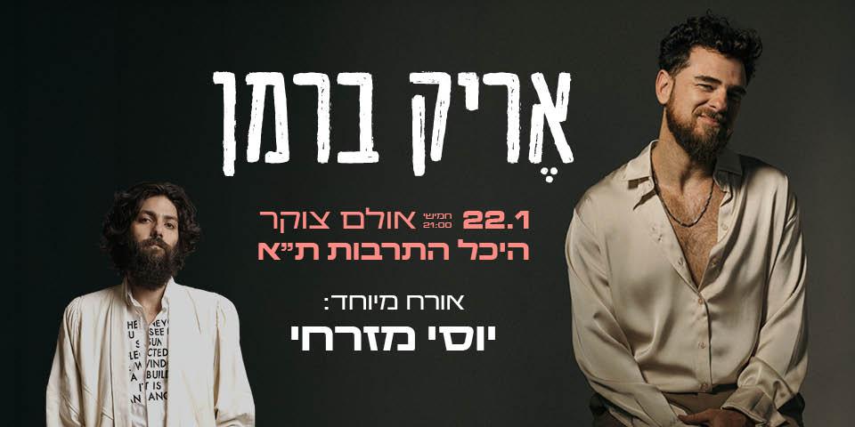 אֶריק ברמן מהכותבים המקוריים והבועטים בארץ מגיע להיכל התרבות ת״א, אולם צוקר, עם כל הלהיטים האהובים :