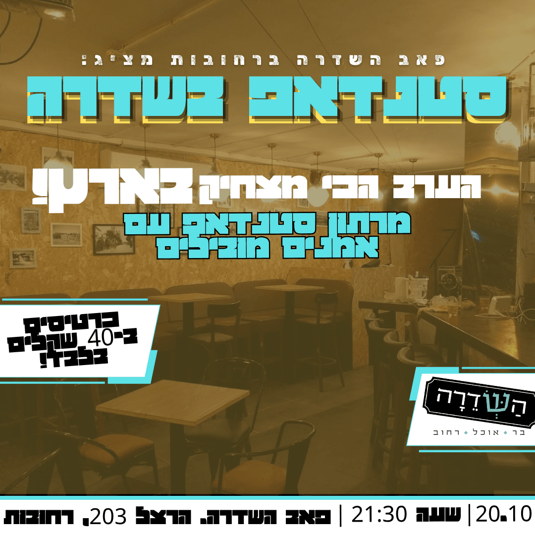 העיר שהביאה לכם מוסדות בעלי שם עולמי כמו מכון ויצמן והפועל מרמורק, מביאה עוד להיט אורגינל: ערב הסטנדאפ המטורף של פאב השדרה ברחובות!