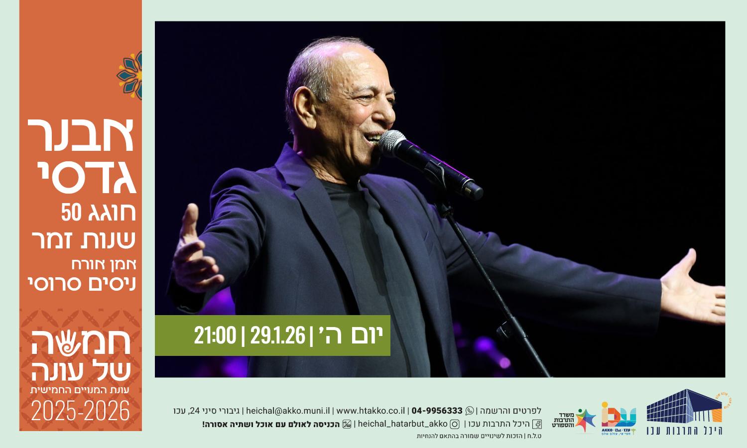 אבנר גדסי אחד מעמודי התווך של המוזיקה הישראלית חוגג 50 שנות זמר במופע מיוחד ומרגש.
