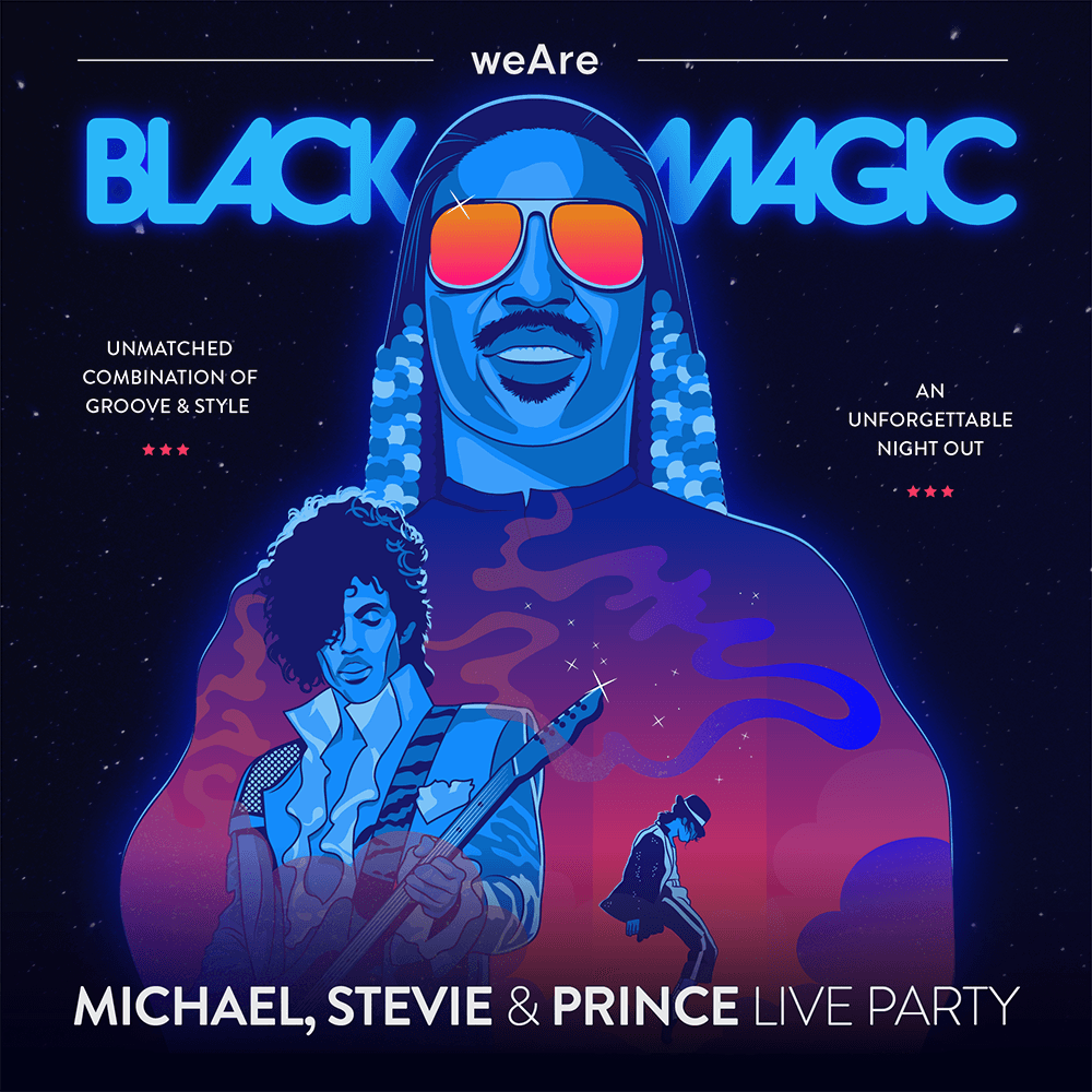 An amazing live party with the music of Prince, Michael Jackson and Stevie Wonder, brought to you by the incredible Black Magic band.