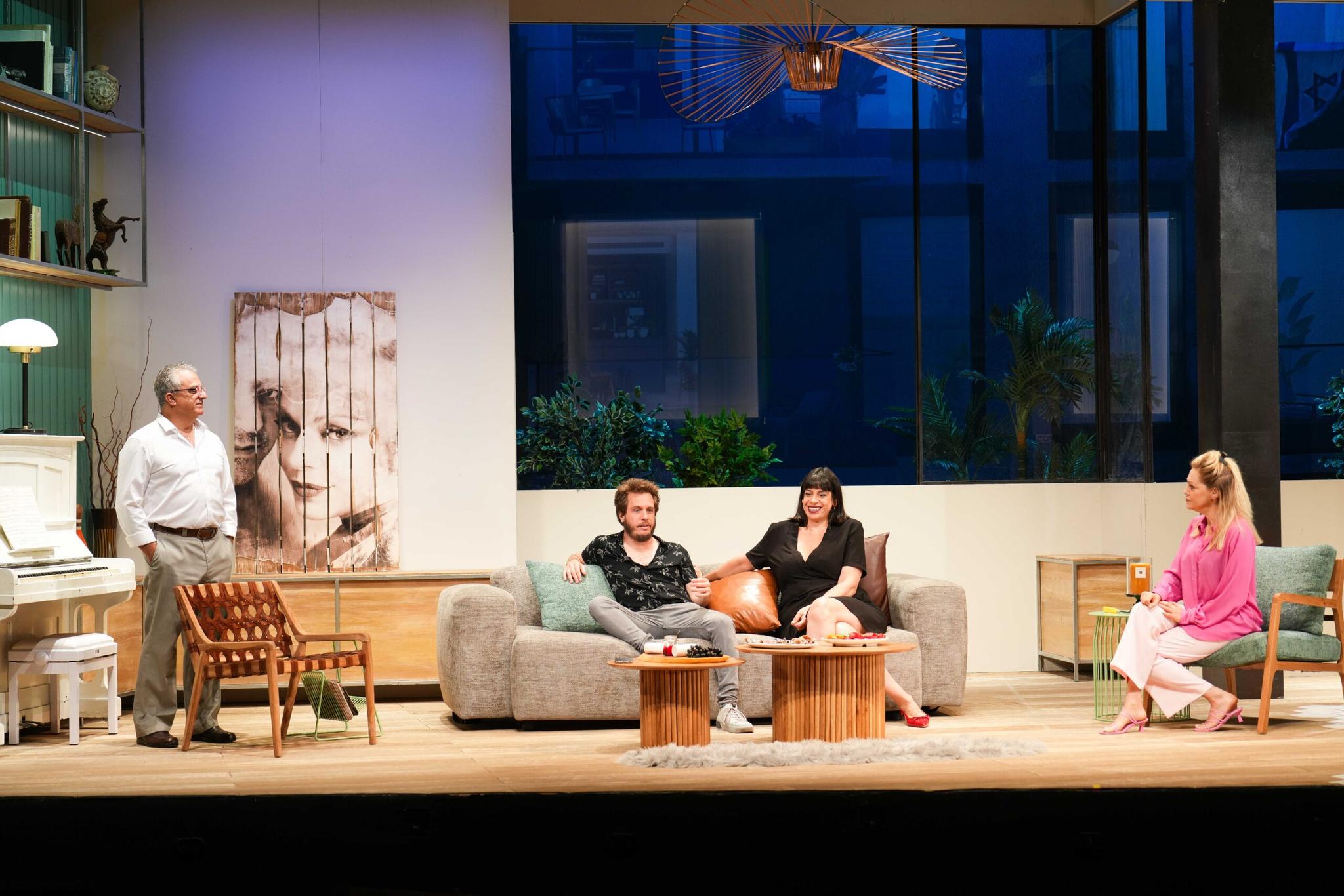 • מאת: ססק גאי תרגום לעברית: ארז דריגס בימוי: נתן דטנר עיצוב תפאורה: אלכסנדרה נרדי עיצוב תאורה: קרן גרנק עיצוב תלבושות: אביעד אריק הרמן עריכה מוסיקלית: מירי לזר “LOS VECINOS DE ARRIBA” ("THE PEOPLE UPSTAIRS"): The production was originally produced by Produccions Artístiques Elefant with the collaboration of Teatre Romea, Trasgo and Mola Produccions. It premiered in 2016 at the Teatre Romea in Barcelona.