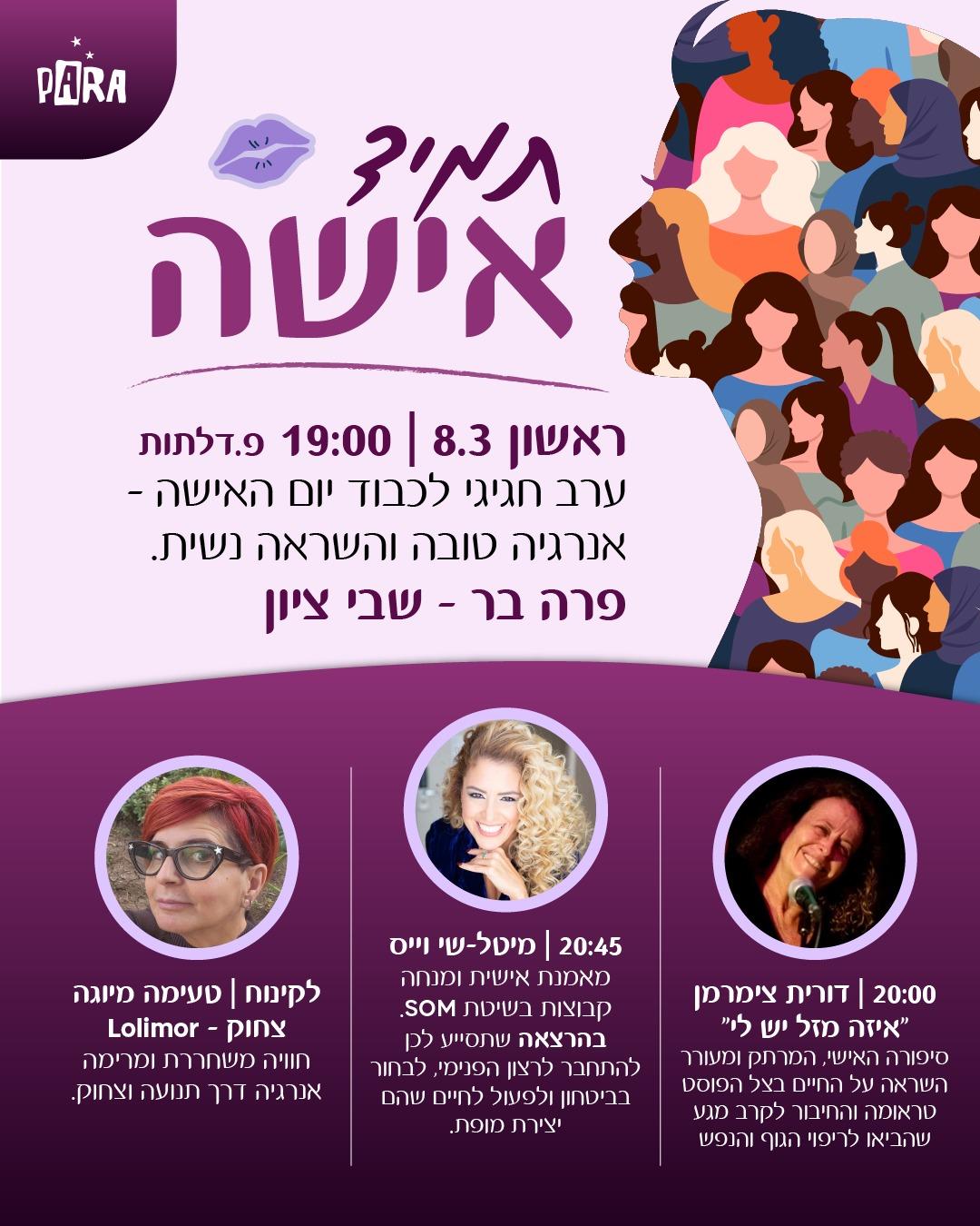 יום האישה - שתי הרצאות עוצמתיות וסיום אחד משחרר במיוחד