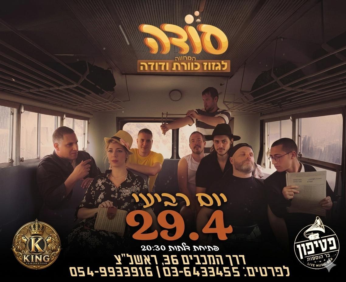 סוֹדָה מביאים לבמה את שירי הרוקנרול האהובים שעיצבו את המוזיקה הישראלית בביצועים סוחפים, נוסטלגיים ומלאי שמחת חיים בין השירים במופע: