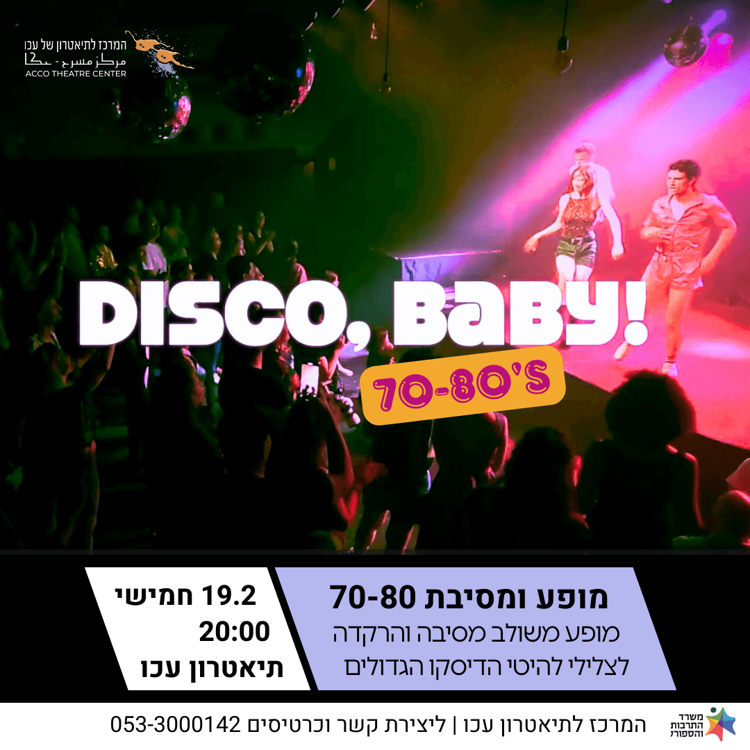 שובב, מקפיץ, מרים – דיסקו! מופע משולב של מחול, מסיבה והרקדה קבוצתית, חוויה בימתית־חברתית שמחזירה לגוף את חדוות התנועה ולרחבה את האנרגיה.