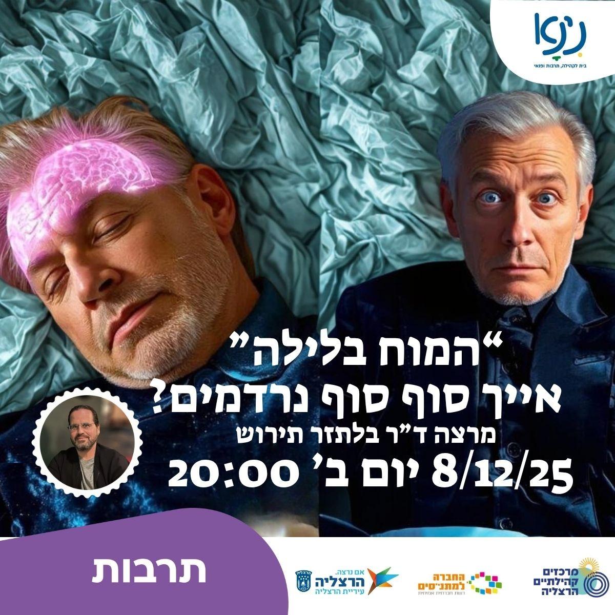 מתאים לכל הגילאים, לכל מי שרוצה להבין מדוע מתעוררים בלילה למה קשה להרדם ואייך זה משפיע עלינו, נדבר גם על טכניקות הרדמות.