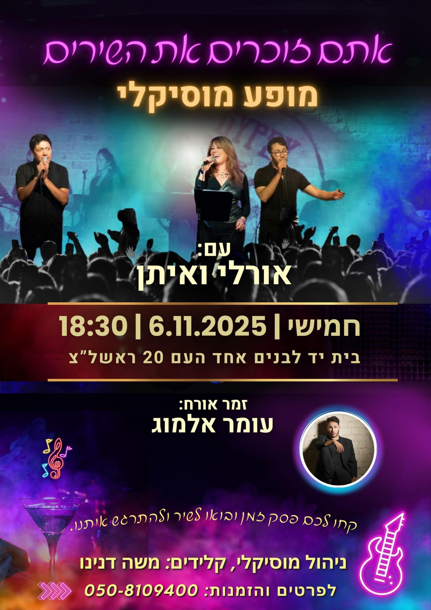 מופע מרגש של שירים ישראלים נוסטלגיים עם אורלי ואיתן מארחים את בנם עומר אלמוג. בביצועים מדהימים.