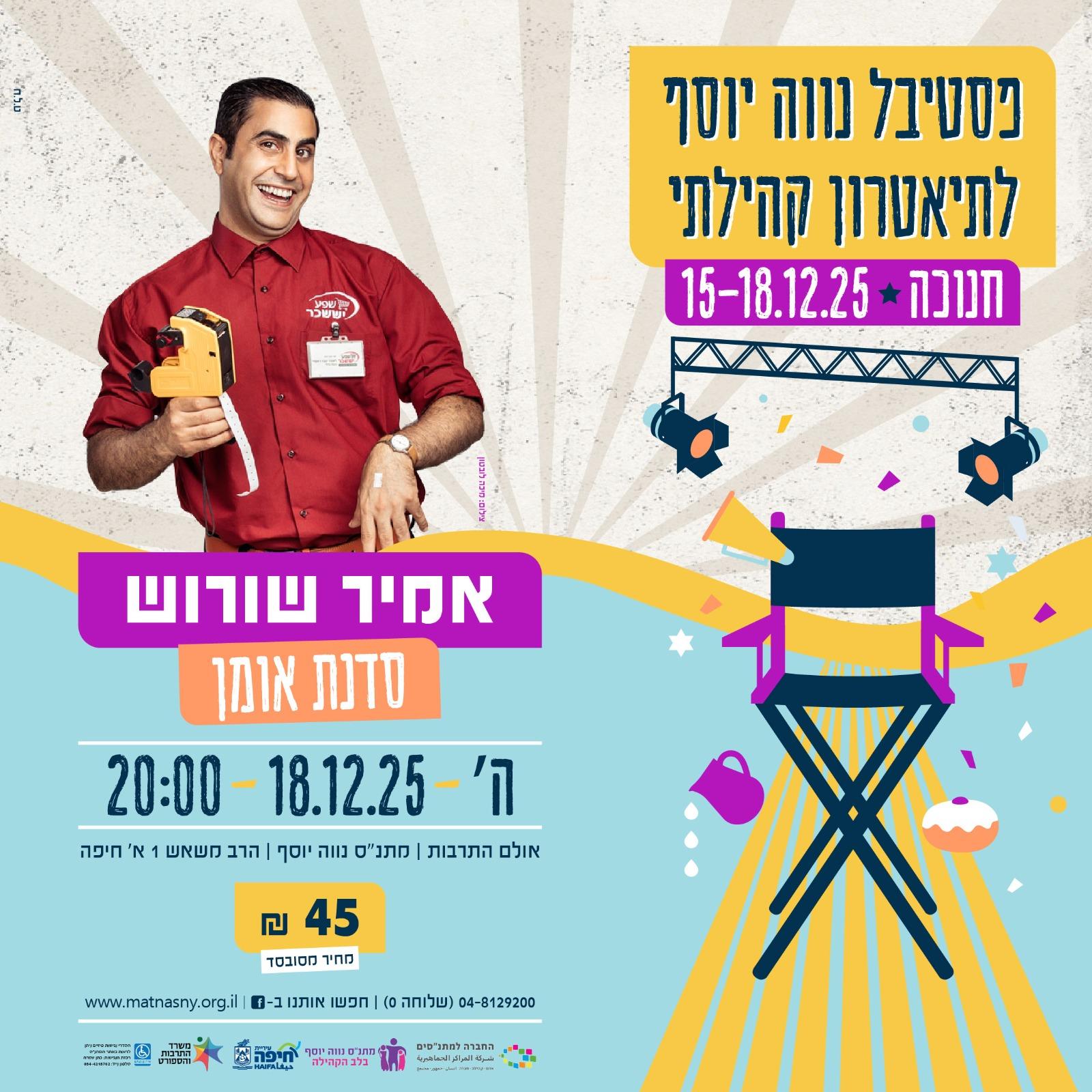 סדנת אמן עם אמיר שורוש (הידוע כ"ראמזי") מגיע למתנ"ס נווה יוסף למפגש אינטימי ומשעשע, שיכלול סיפורים אישיים, חשיפת סודות מאחורי הקלעים של הדמויות האהובות עליו (כמו "ראמזי" מ"קופה ראשית"), ושיחה פתוחה עם הקהל.